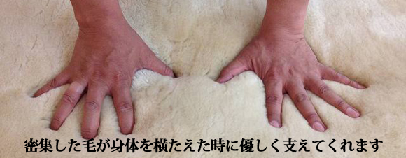 - ムートンの毛は1平方センチメートルに約3,000から5,000本の毛が密生しています。この高密度の毛を一定の長さに切り揃えると横になった時に身体を持ち上げるように優しく支えます。