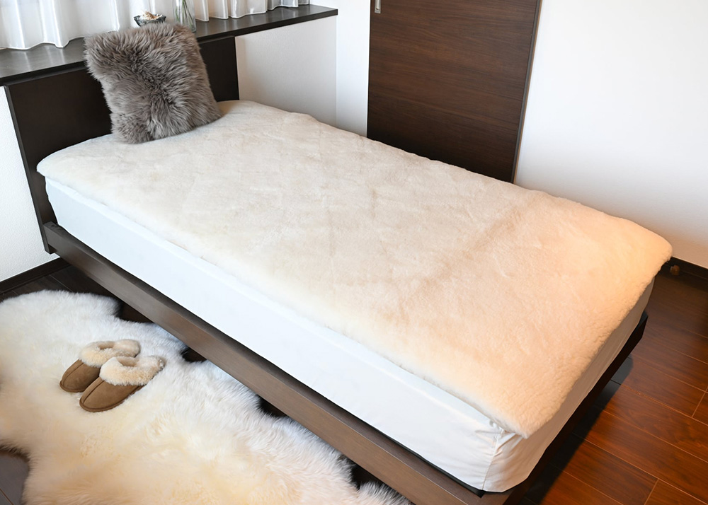 京都八田屋では、100%天然素材の羊毛が持つ寝具の素材としての良さをより多くの人に親しんで頂くために毛皮素材として服飾・インテリアにも使用されているムートンを使った敷寝具をご提案致します。