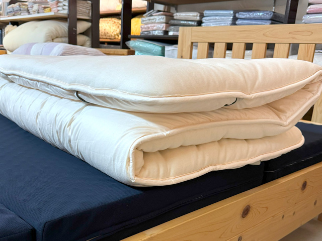 多くの羊毛が敷き詰められた、ベッドパッドは、ふっくらとした寝心地です。